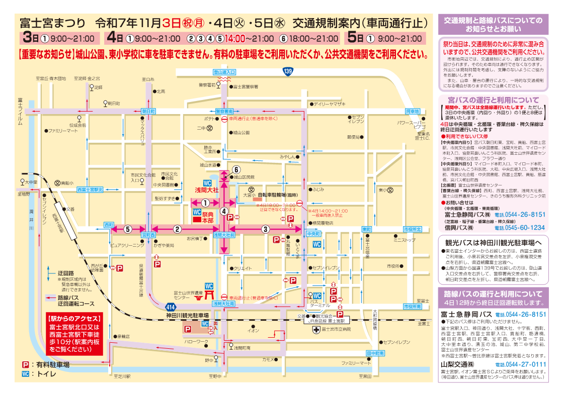 上記期間中、当センターは通常どおり開館しておりますが、交通規制が行われるため、周辺道路が大変混雑することが予想されます。 「富士宮まつり」開催期間中に当センターへの来館を予定されている方におかれましては、ご注意ください。