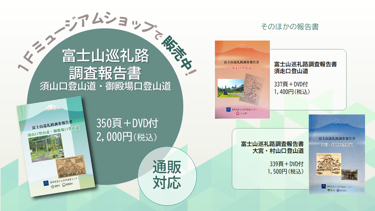 当センター1階ミュージアムショップで、富士山巡礼路調査報告書を販売しております。