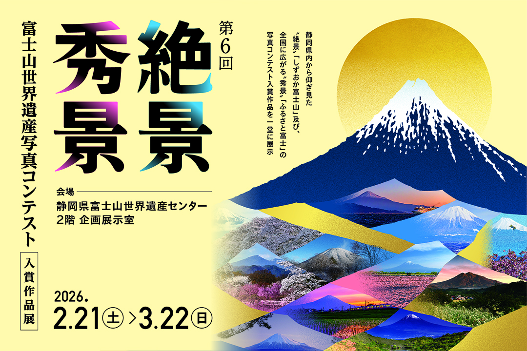 今年も富士山の日を迎えるにあたり、「第6回 絶景・秀景 富士山世界遺産写真コンテスト」の入賞作品展を開催し、静岡県内から仰ぎ見た絶景「しずおか富士山」と、全国に広がる秀景「ふるさと富士」のコンテスト入賞作品を一堂に展示します。