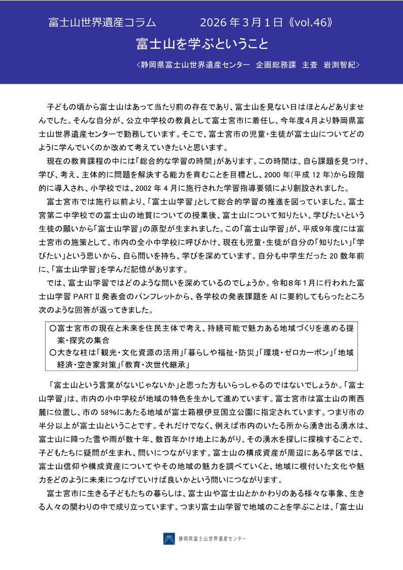 富士山世界遺産コラム〈Vol.46〉
