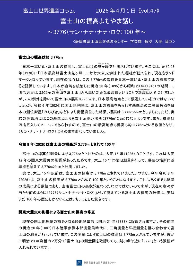 富士山世界遺産コラム〈Vol.47〉